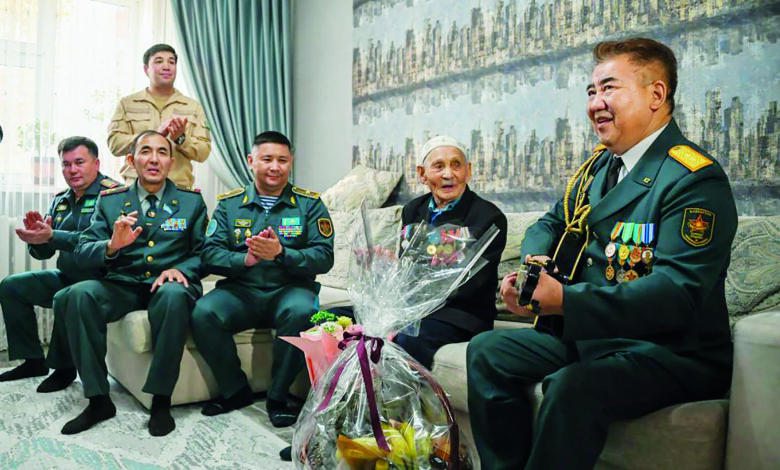 С днем рождения фронтовика поздравили военнослужащие Министерства обороны, Департамента по делам обороны, представители РОО «Ветераны Вооруженных сил» и воспитанники военно-патриотического движения «Жас сарбаз».