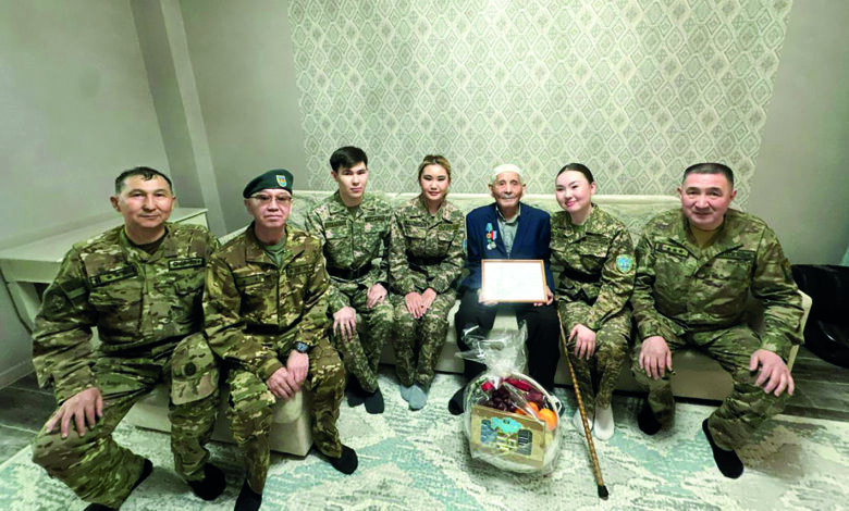 Студенты военной кафедры столичного Казахского университета технологии и бизнеса посетили ветерана Великой Отечественной войны Рзагула БАЙКЕШЕВА, которому исполнилось 102 года.