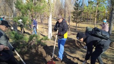 «Таза Қазақстан»: члены АНК посадили на столичной аллее молодые ели