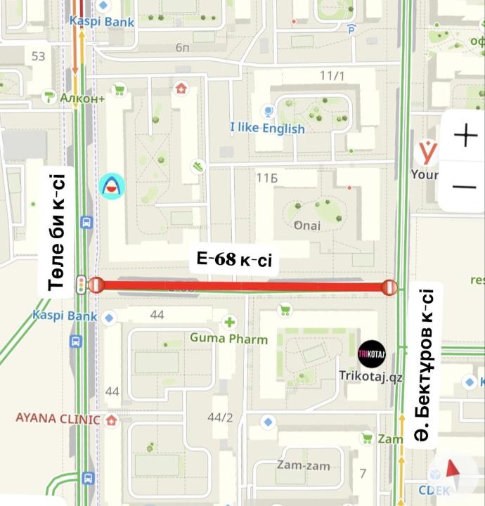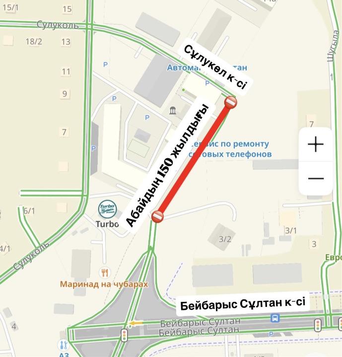 — с 5 апреля по июнь текущего года планируется полное перекрытие движения автотранспортных средств на участке улицы Е68 от ул. А. Бектурова до ул. Толе би в связи с началом строительных работ.