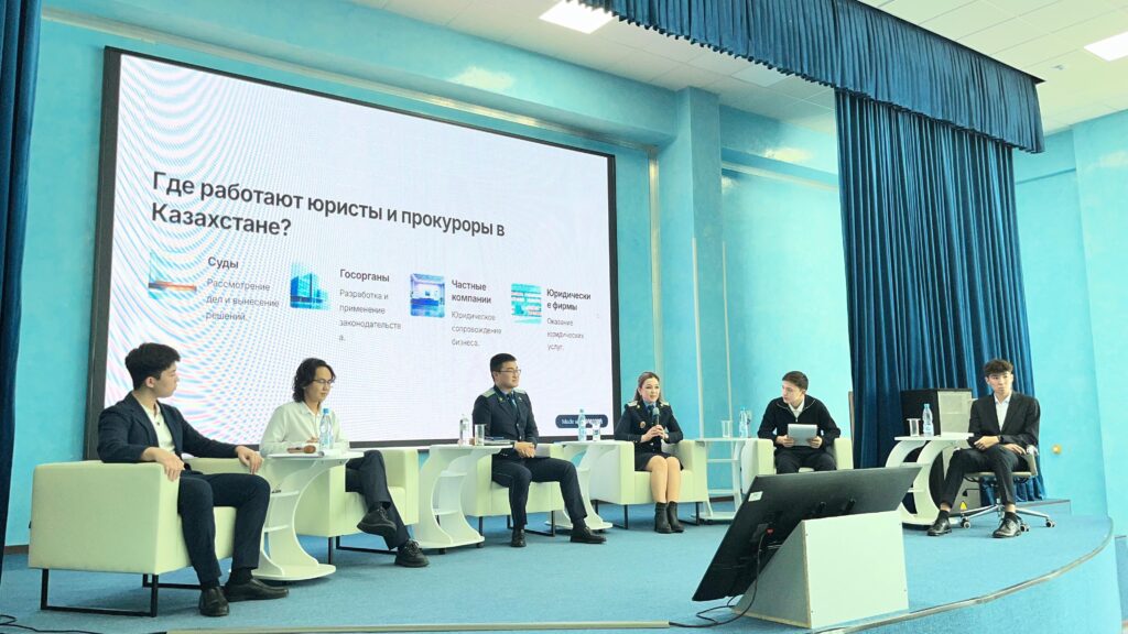 Мероприятие прошло в формате подкаста — без трибун и официальных речей. Такой подход позволил выстроить живой диалог между школьниками и представителями прокуратуры. В актовом зале собрались участники клуба из 17 школ района «Сарайшық», а также учащиеся 9-11 классов школы-гимназии № 91, интересующиеся юридическими профессиями.