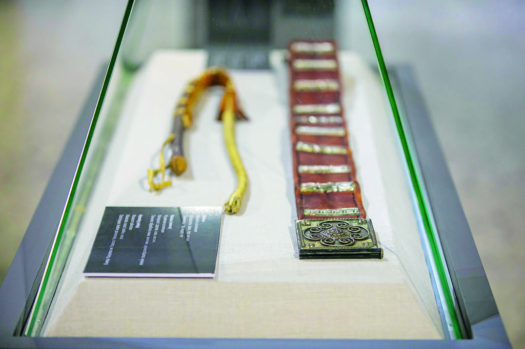 В экспозиции есть реконструкции исторических предметов. Среди них элементы украшений сакского правителя — «Золотого человека». Орнаменты и декоративные элементы символизируют высокий статус правителя и его принадлежность к элите.