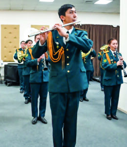 Подполковник Алмаз ИБРАГИМОВ, начальник Военно-оркестрового управления и главный дирижер, отметил, что оркестр ежегодно участвует в международных конкурсах и фестивалях, где занимает призовые места.