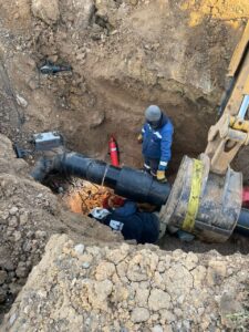 В жилом массиве Кирпичный продолжаются строительно-монтажные работы. Из запланированных 16,8 км проложено 16,5 км. Ввод в эксплуатацию также намечен до конца 2025 года.