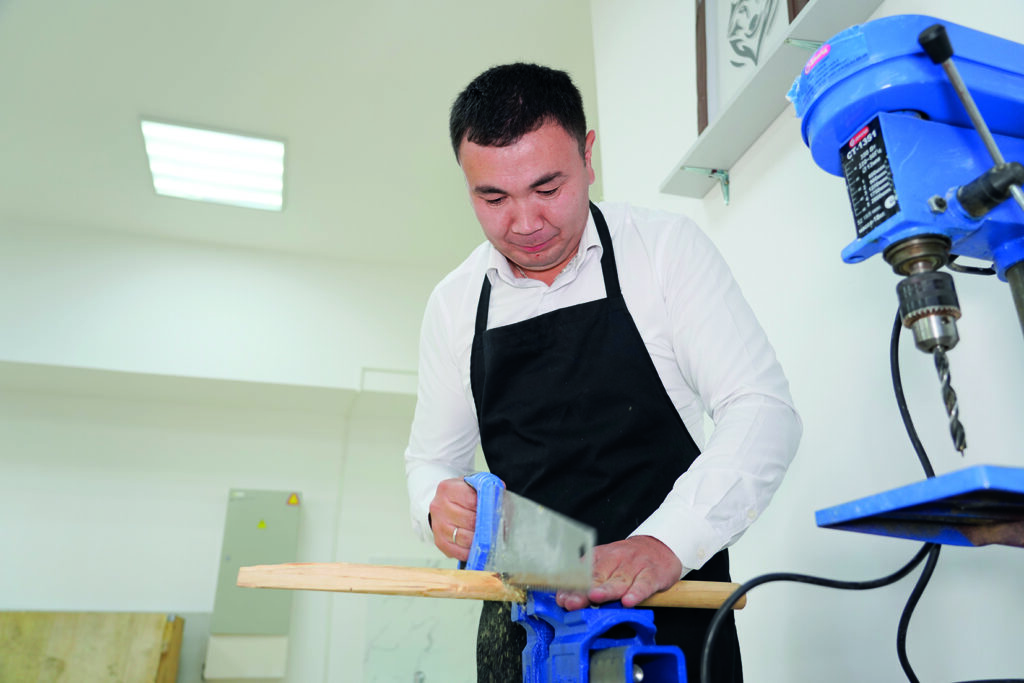 Бейбіт БИБОСЫНОВ — учитель труда в столичной школе-гимназии № 69 имени Кемаля Акишева. Создавая вместе с ребятами изделия из гипса, дерева и металла, он не просто учит ремеслу, а передает детям частичку души.