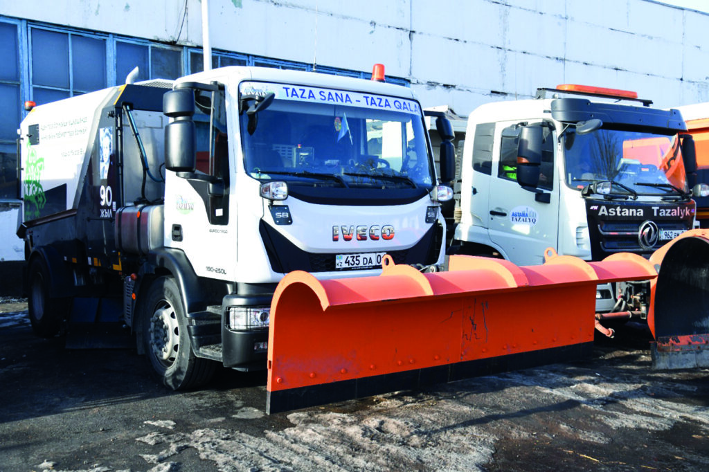 Особое внимание привлекает белая КДМ IVECO — многофункциональная техника для зимнего содержания города. Широкие снеговые отвалы, два двигателя, экологический стандарт «Евро-5», экономичность — она, по словам Дастана Мусабекова, способна заменить несколько старых КамАЗов. Летом такая техника превращается в поливомоечную машину, а зимой легко переоборудуется для работы в снегу.