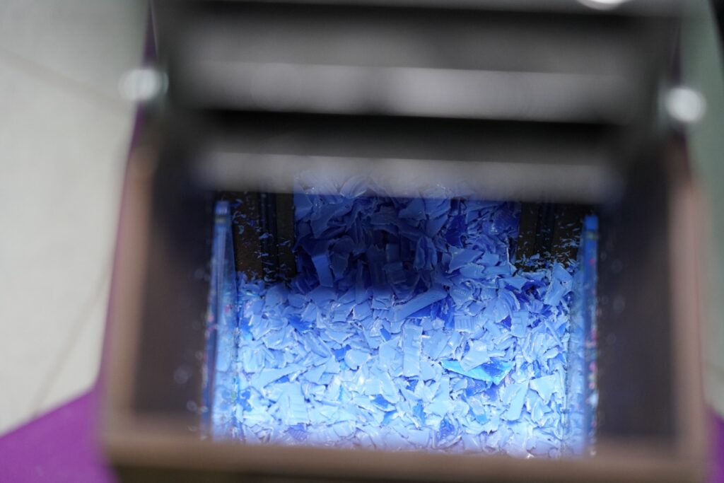 Студенты смогли не только увидеть, но и попробовали собственными руками принять участие в этапе переработки пластиковых крышек. Ребята крутили педали велошредера и наблюдали, как крышки превращаются в пластиковой гранулят.