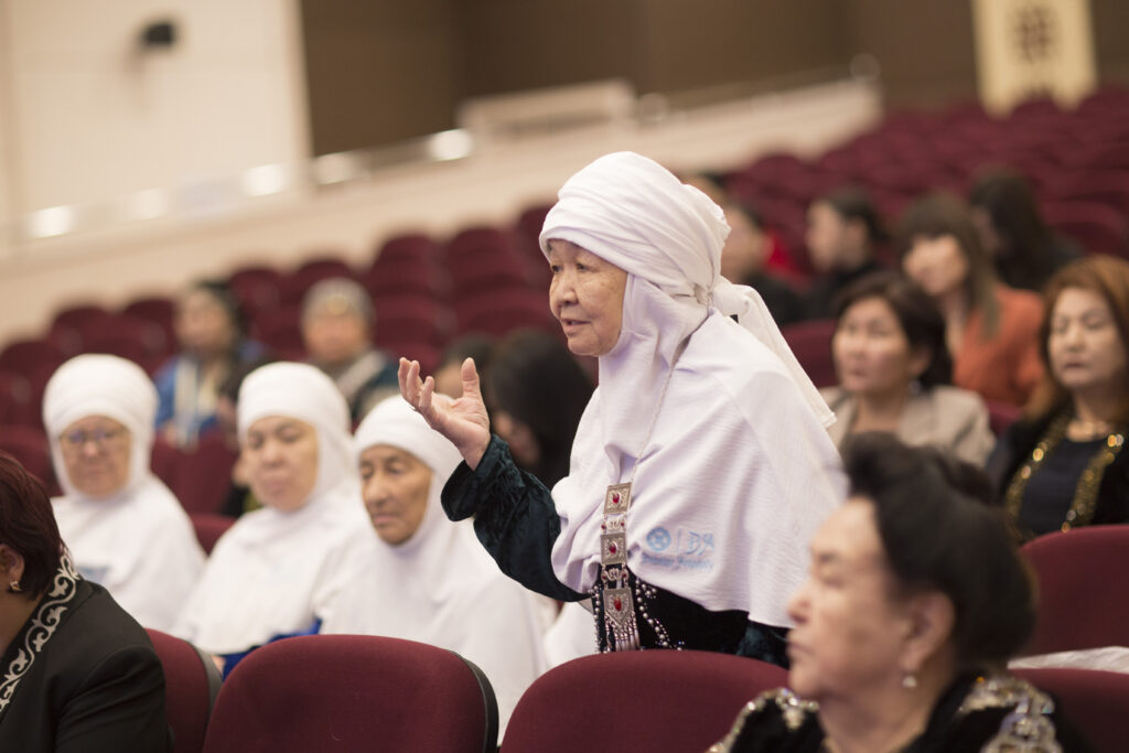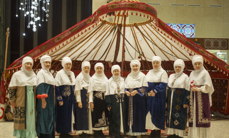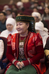 Открытие форума ознаменовалось глубоким по смыслу и эмоциональным по содержанию действием — обрядом повязывания кимешека. Этот обряд не просто элемент традиционного костюма, а сакральный символ, воплощающий образ казахской матери, хранительницы очага, носительницы мудрости и нравственных ориентиров. В этот момент участники форума словно прикоснулись к живому дыханию предков, к их любви, стойкости и внутренней силе.