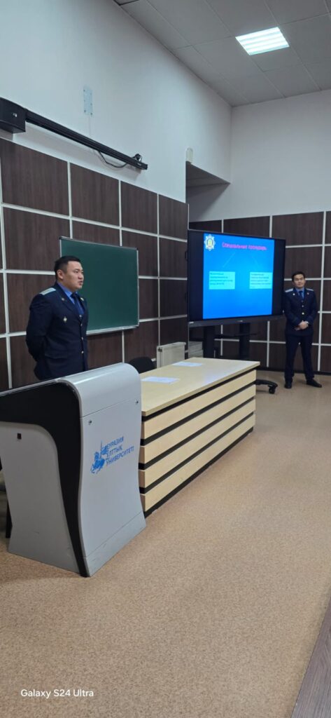 В рамках идеологемы «Закон и порядок» сотрудниками Управления досудебного расследования прокуратуры города Астаны Разьяновым Д.Б. и Нұрмұханбет С.А. в Евразийском национальном университете имени Л.Н. Гумилева проведена лекция на тему «Противодействие и профилактика преступлений, связанных с незаконным оборотом наркотических и психотропных веществ, дропперства и мошенничеств».