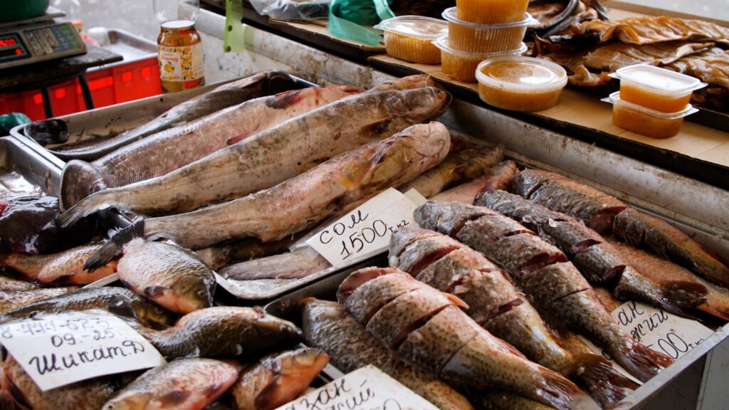 На прилавках ждала продукция 50 наименований: мясо и колбасные изделия, свежая рыба, яйца, молоко и молочная продукция, мука, картофель и овощи.