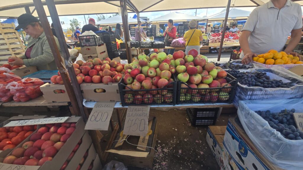 — Приехал на ярмарку закупиться с семьей на выходных, цены приемлимые. Купил свежий перец всего за 300 тенге, алматинские яблоки сорта «апорт» — по 650, тары по 1000 тенге за килограмм. Картошку тоже взял — крупная, чистая, по приемлемой цене. Видно, что от фермеров напрямую. Надеюсь, что цены останутся такими,- сказал Айбек Сарсенгалиев.
