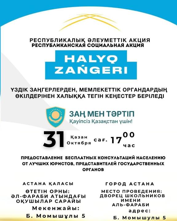 Стоит отметить, что акция «Народный юрист» в этот день пройдёт по всему Казахстану.