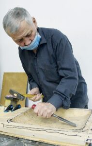 В помещении аккуратно разложены заготовки и различные инструменты. Люди приходят сюда не просто провести времяи — они создают вещи, которыми искренне гордятся. Сначала пенсионеры думали, что это мастерская, работающая по заказам. Говорили: «Сделайте мне то, сделайте это». Но им сразу объяснили: «Нет, вы сами все сделаете». И сегодня на занятия приходят 34 активных участника. Атмосфера в группе настолько теплая и живая, что многие продолжают работу даже дома.