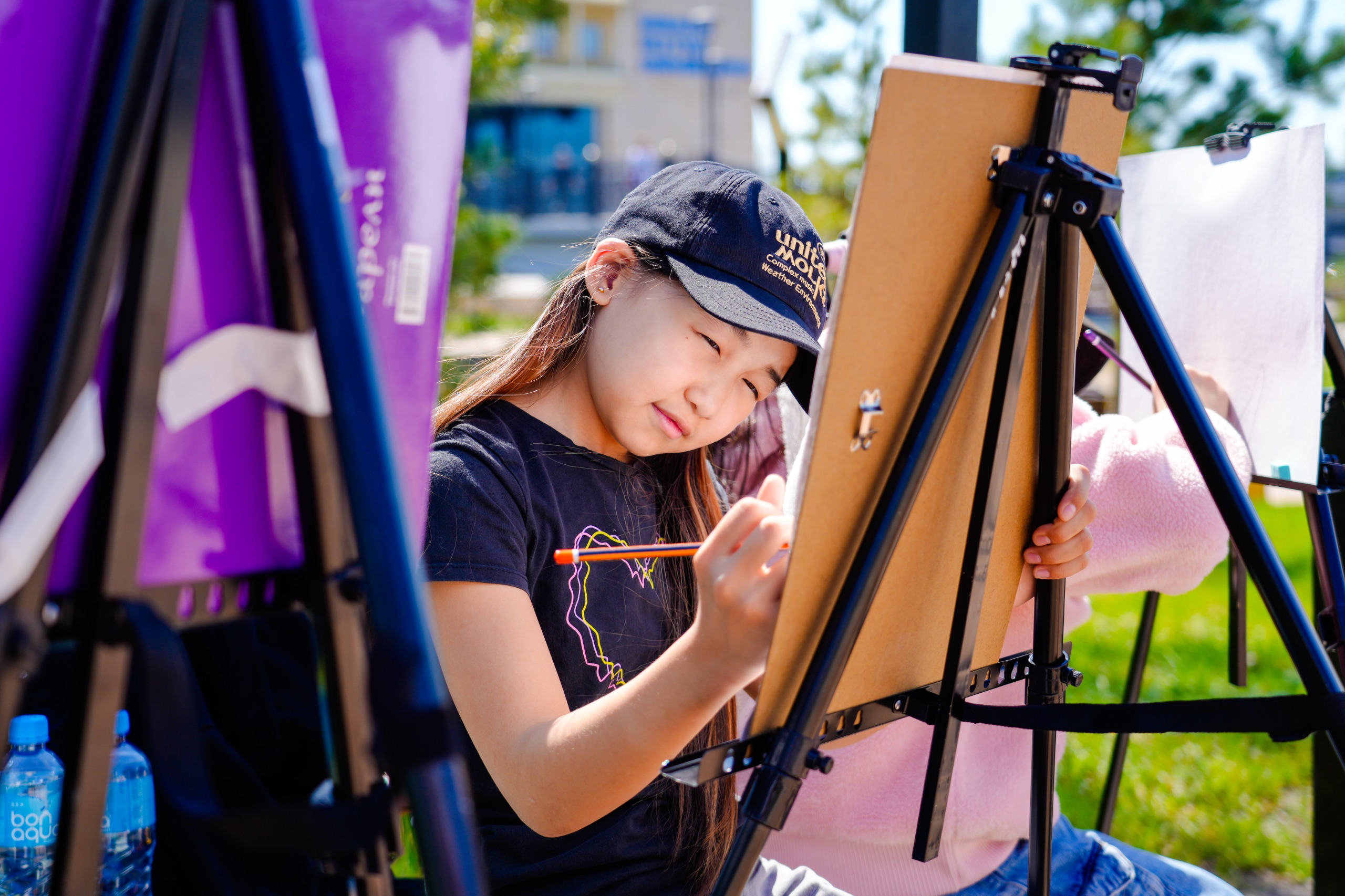 Юные художники дружно откликнулись на приглашение организаторов. На набережной реки Акбулак на лоне природы с кистью в руках они создавали яркие шедевры.