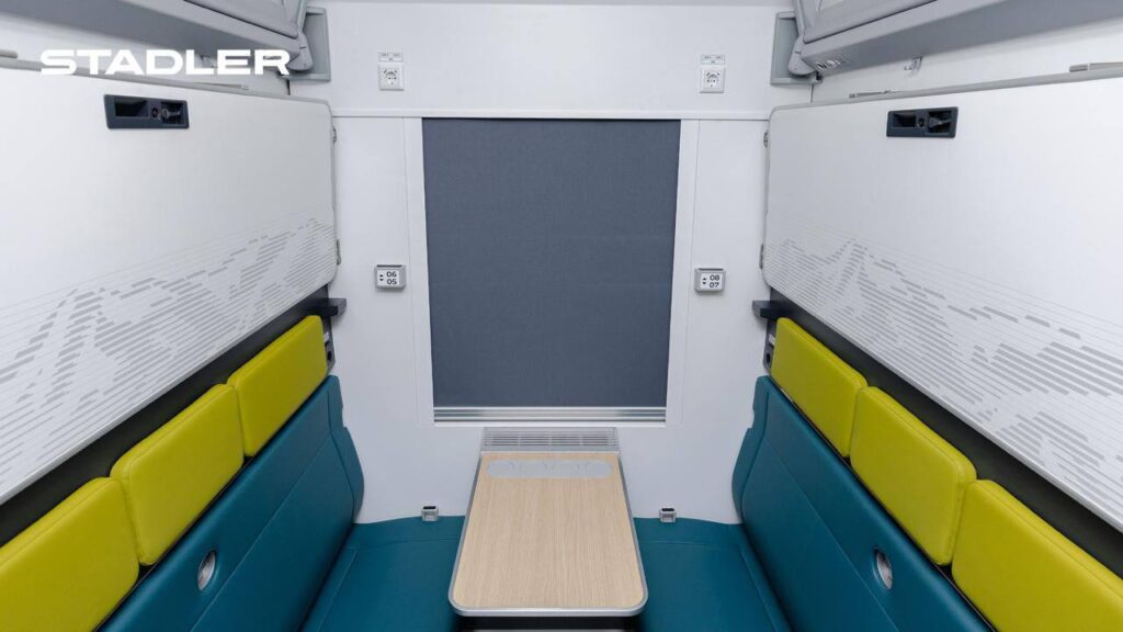 Каждое место оборудовано индивидуальным светильником, розеткой 220V, а также портами USB и USB-C. Под сиденьями увеличено пространство для хранения — туда помещаются две большие сумки. Центральный стол выдерживает нагрузку до 200 кг.