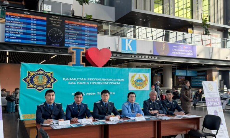В рамках реализации идеологии «Закон и порядок» Астанинская транспортная прокуратура совместно с Линейным управлением полиции на станции Астана провела акцию «Правовая аптека» на железнодорожном вокзале «Нұрлы-жол».