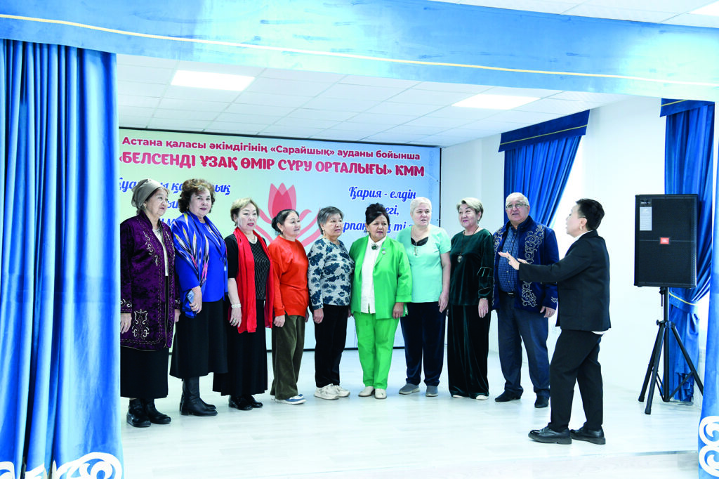 Это шестой центр в столице, где пенсионеры могут с пользой проводить свое свободное время. Светлое здание на одной из тихих, недавно застроенных улиц Байтурсынова, 63 с утра наполнено голосами хористов фольклорного и вокального ансамблей «Тұран» и «Сарыйшық сазы» — они особая гордость центра. Здесь под управлением опытных музыкальных наставников ежедневно проходят репетиции. Вокальный коллектив уже выступает на городских мероприятиях и готовится к первому концерту.