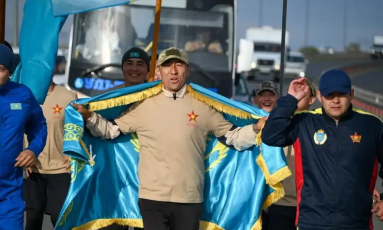 Старт забега был дан в столичном парке «Коктал» пять дней назад, а финишировал марафонец у здания Министерства обороны. Здесь его встретили с воинскими почестями, аплодисментами и баурсаками. Атмосфера на строевом плацу была по-настоящему праздничной – играл военный оркестр, коллеги и родные с гордостью приветствовали триумфатора.