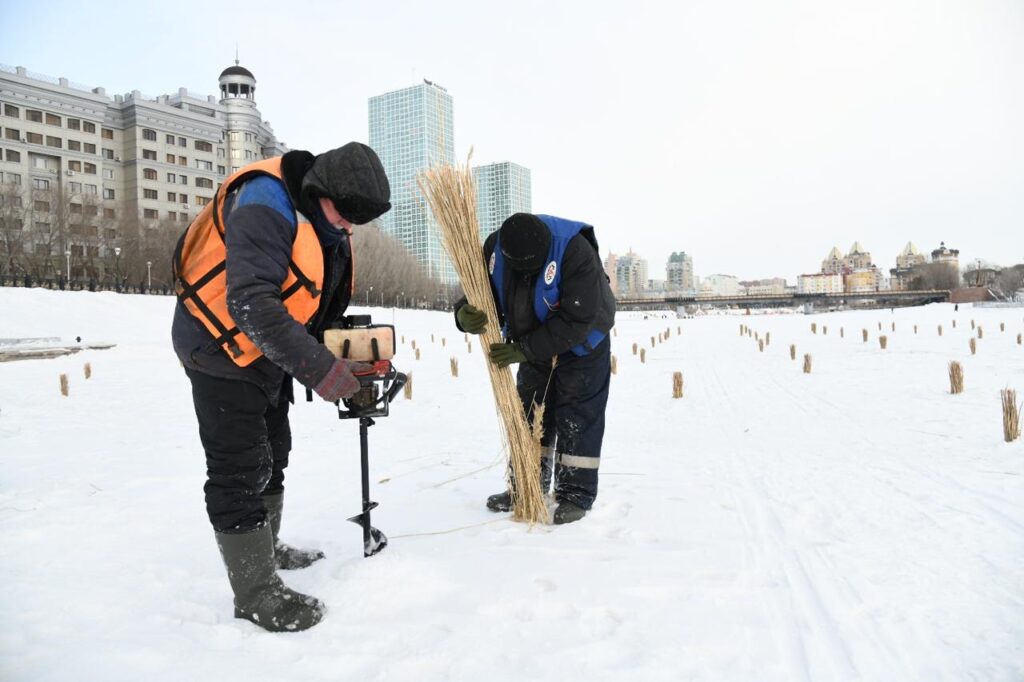На текущий момент установлены снопы из камыша. Работы завершены на четырех участках реки от моста «Аркар», до моста «Марал», от моста «Қараөткел» до пешеходного моста «Атырау», от пешеходного моста «Серуен» до моста «Тулпар», а также от моста «Тулпар» до района газовой аппаратуры. Всего обустроено 16 прорубей, 840 лунок и 32 майны, — отметила сотрудник столичного Управления охраны окружающей среды и природопользования Жанар САДВОКАСОВА.
