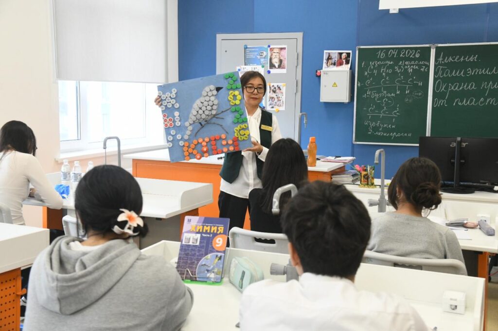 — Сегодня мы проводим не только выставку, но и открытый урок, посвященный теме экологии. Такие мероприятия помогают повысить информированность наших учеников. Каждый из них на выставке будет защищать свою работу, а всего представлено около 100 творений юных авторов, — отметил директор школы Нуртас Жагабаев.