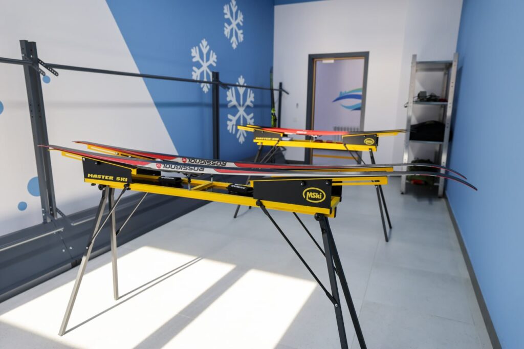Особое внимание уделено инновационному оснащению. На базе установлен уникальный симулятор «Тредбан», для которого выделен отдельный зал. Оборудование позволяет оттачивать технику и развивать выносливость круглогодично, независимо от погодных условий. Тренажер обеспечивает безопасный контроль нагрузок под наблюдением специалистов.