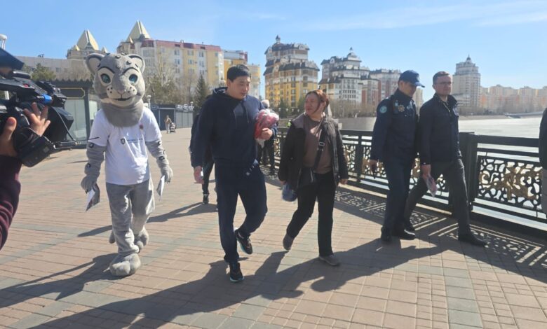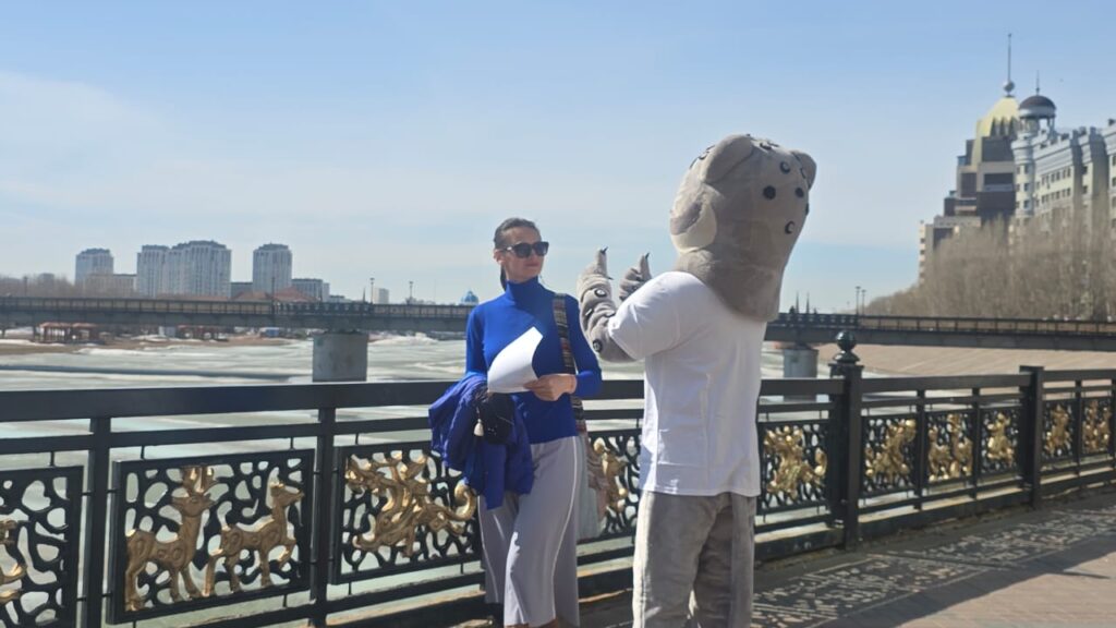 Акция прошла на Центральной набережной, у памятника Кенесары-хану.