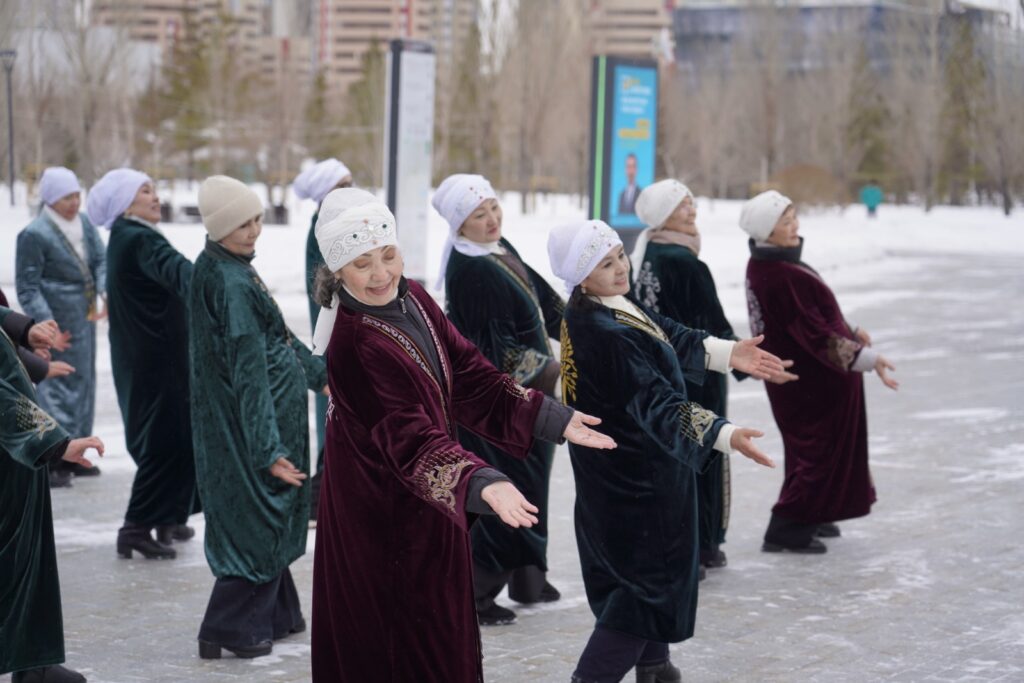Участницы народного ансамбля «Қыздарай» Центра активного долголетия района «Нура» провели предпраздничный флешмоб «Қош келдің, әз-Наурыз!».