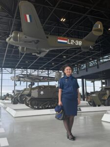 В августе я прошла курсы по военно-международному сотрудничеству в Королевстве Нидерландов. Там были офицеры из Южной Америки, Африки, Европы, Ближнего Востока, постсоветских стран. Полтора месяца обучения. Нас учили определять фейк-ньюс, анализировать информацию, прогнозировать развитие событий. Мы изучали особенности ведения переговоров с представителями разных стран — культурные различия, специфику коммуникации. Делились на группы, разбирали реальные кейсы — Гаити, Ближний Восток, страны СНГ. По итогам — презентации, оценки. Мы также посетили Европарламент, познакомились с его законодательной системой.