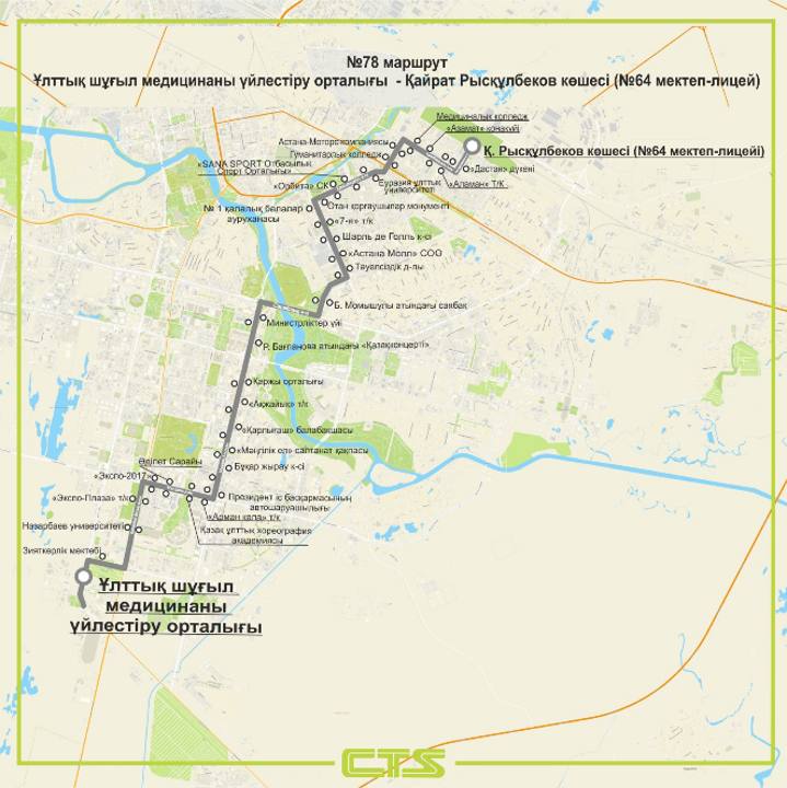 • Маршрут №78 – Национальный центр экстренной медицинской координации – Школа-лицей №64.