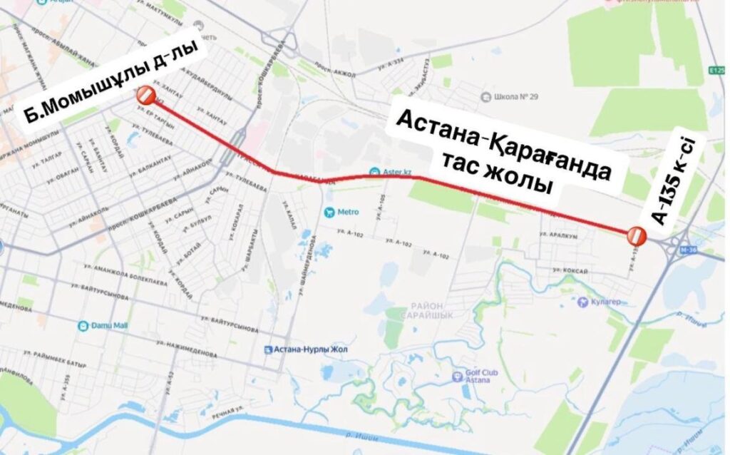 Участок трассы Астана-Караганда частично закрыли до 2 октября