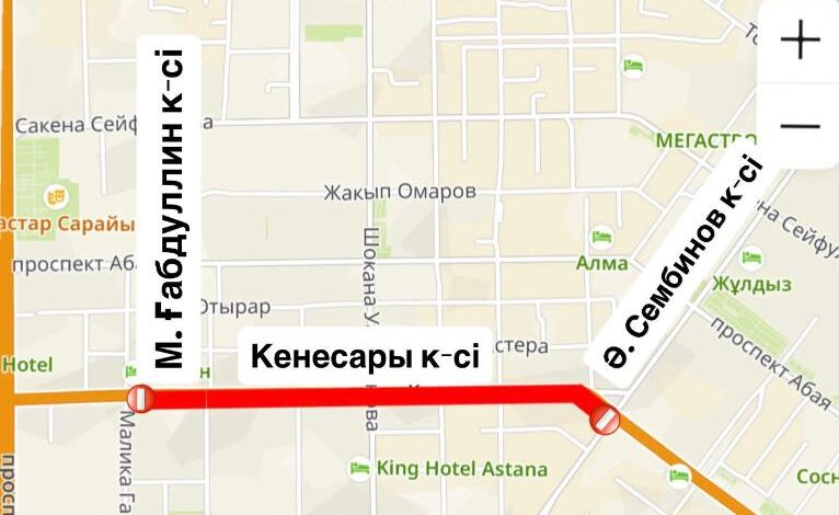 Участок улицы Кенесары закрыт до конца апреля
